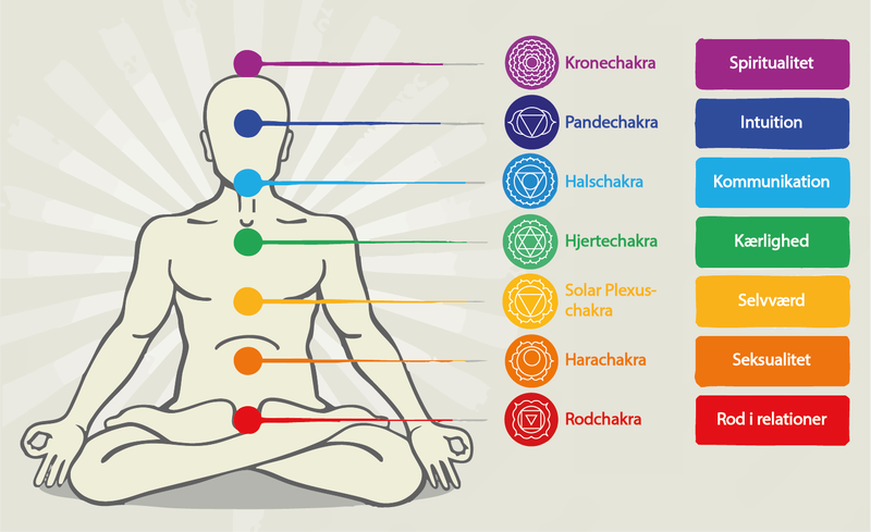 Prøv at se på disse punkter nedenfor. Hvert fokuspunkt tilhører ét af de syv hovedchakraer, som symboliserer forskellige livsområder.  Måske kan du mærke, om ét ordene, der beskriver disse områder rammer ind i noget, som synes ekstra vigtigt for dig i livet lige nu? Det kan være, du netop har haft en samtale med din søster eller din mor, der har trigget noget i dig, gjort dig vred eller irritereret, men du ved ikke, hvor det kommer fra. Her kan vi måske have gavn af at se på rodchakraet, som står for forbindelsen til ens familie og barndommen, hele ens rodnet og fundament her i livet.